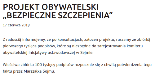 Petycja Dotycząca Obowiązku Szczepień - Aktualizacja