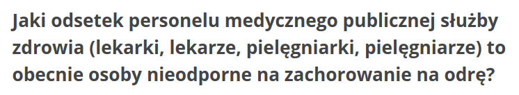 Trudno oprzeć się wrażeniu, że bardzo podatną na zachorowania na odrę grupą są pracownicy medyczni. Ludzie dorośli, którzy przeważnie szczepieni byli tylko jedną dawką lub w ogóle (!). Dlaczego jest to tak istotne, aby pracownicy medyczni byli uodpornieni przeciw odrze?