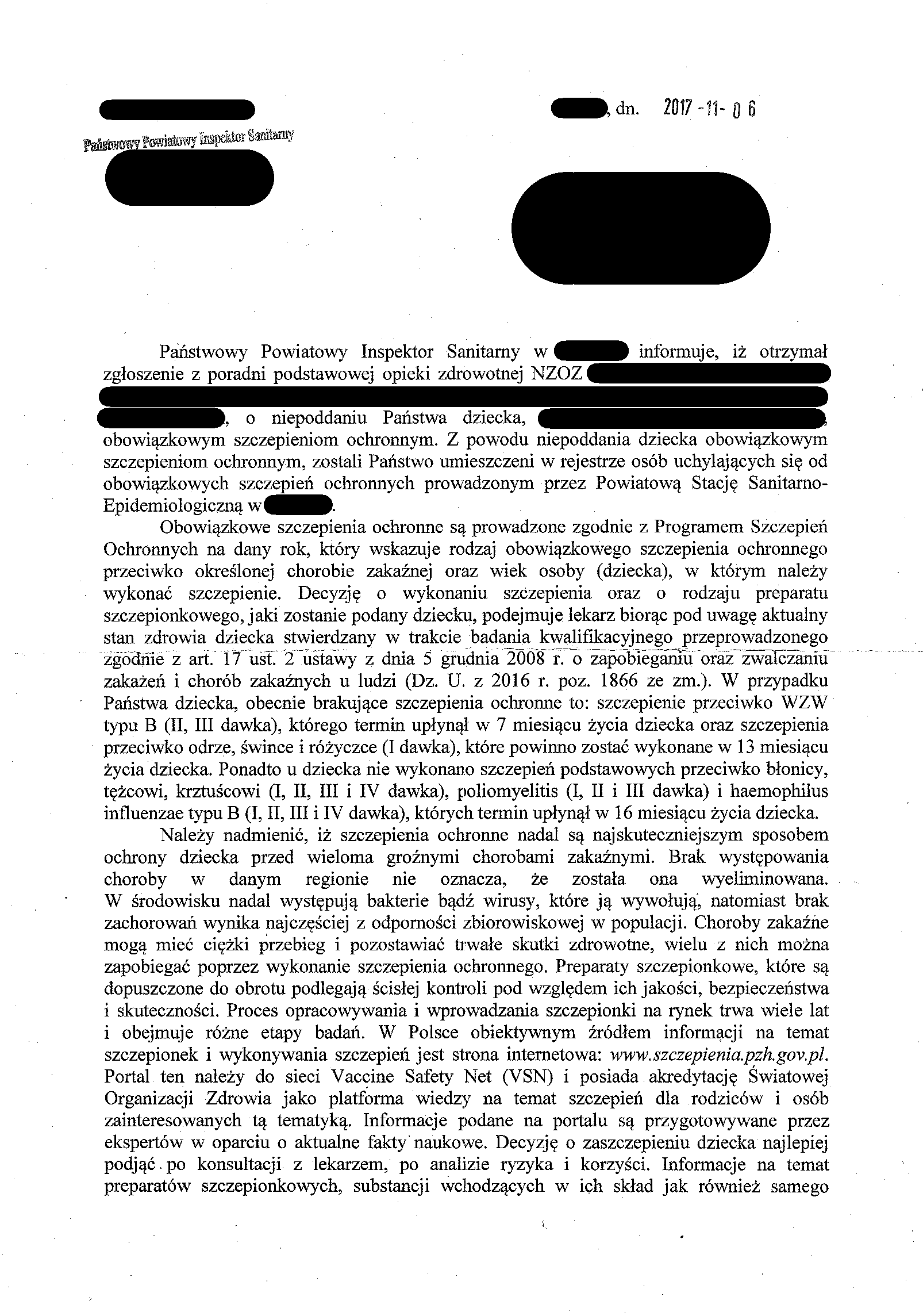 W następnym kroku wysłałam dwa pisma: jedno do sanepidu i jedno do pediatry.