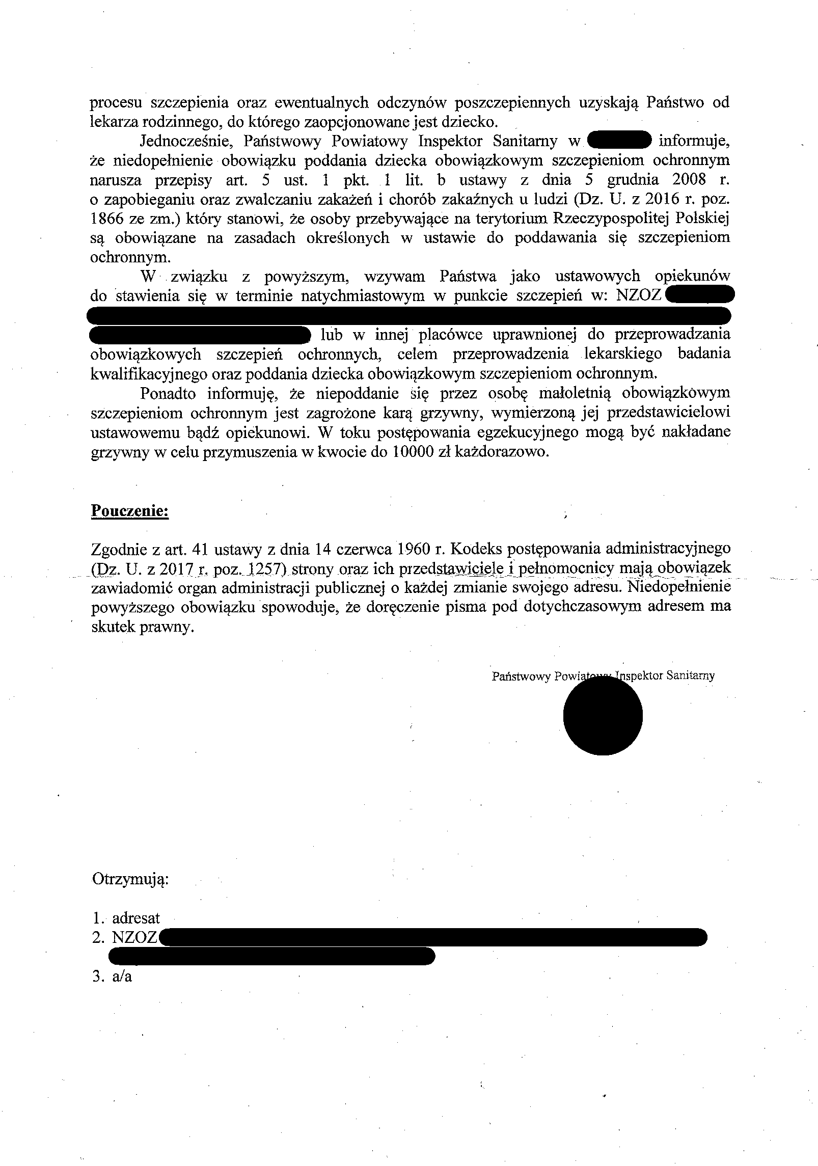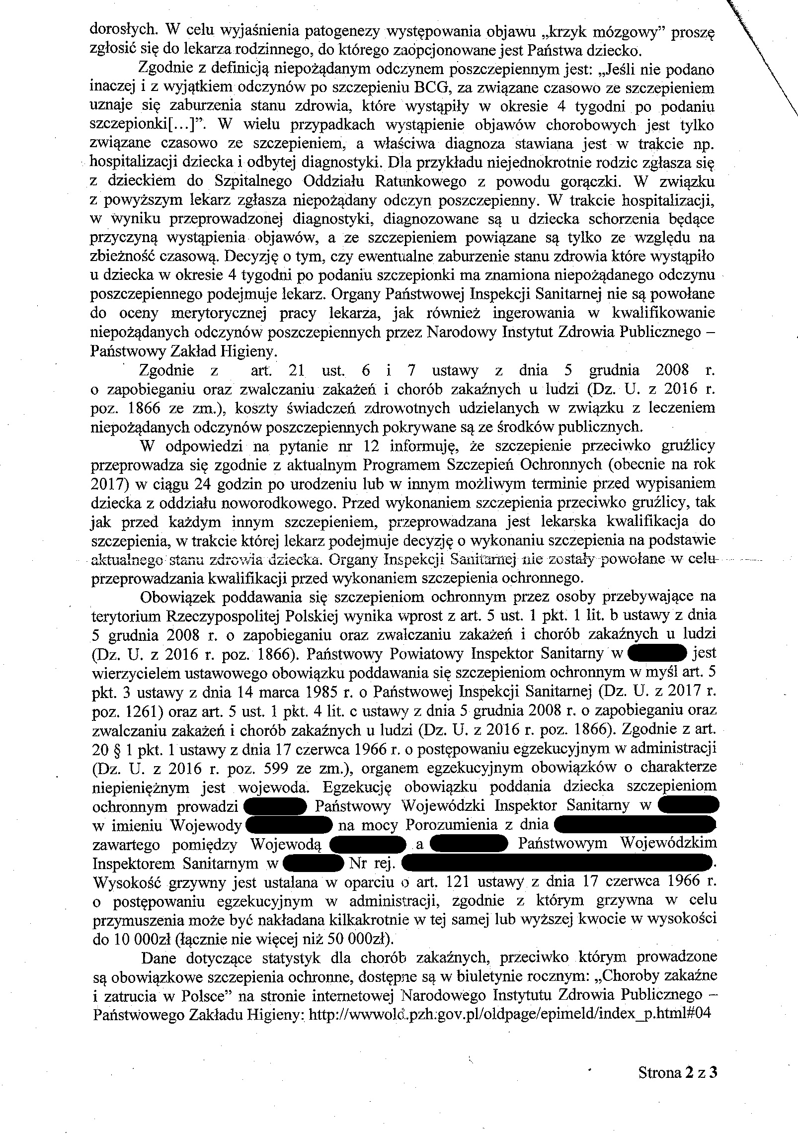 Tymczasem, pierwsze co zrobiłam, to sprawdziłam przepisy, na które powołuje się sanepid. Najpierw te przytoczone, potem całe ustawy, żeby znać kontekst. No kuźwa, jaja se robicie? Jak niby z tych trzech na krzyż ogólnikowych przepisów wynika, że można jakąś grzywnę nakładać? A przecież pod wpływem tego bezpodstawnego zastraszania większość rodziców decyduje się szczepić dzieci wbrew swojej woli, niektórzy wchodzą na drogę sądową tracąc na tę zbędną zabawę mnóstwo czasu i pieniędzy i jeszcze wspomina się o ograniczaniu praw rodzicielskich! Fakt ten stał się bezpośrednim przyczynkiem do powstania bloga. Ludzie muszą się dowiedzieć, jak mogą się bronić.