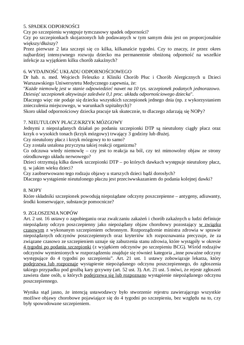 - dlaczego zdarzają się NOPy, jeśli wg dr Feleszko układ odpornościowy dziecka jest w stanie przyjąć 10 tysięcy szczepionek jednocześnie,
