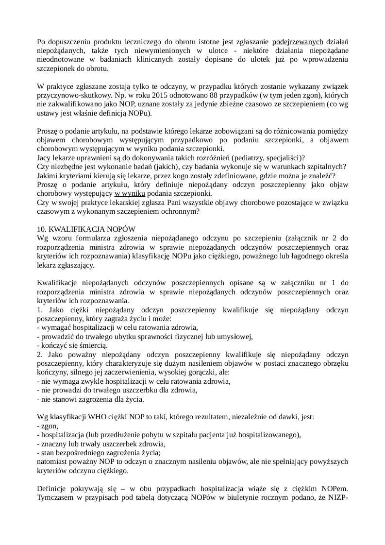 - zapytałam o konkretne przepisy dotyczące weryfikacji NOPów i o to, w jaki sposób ona sama zgłasza NOPy, co jest dla mnie bardzo istotne, gdyż chcę u niej zaszczepić moje dziecko,