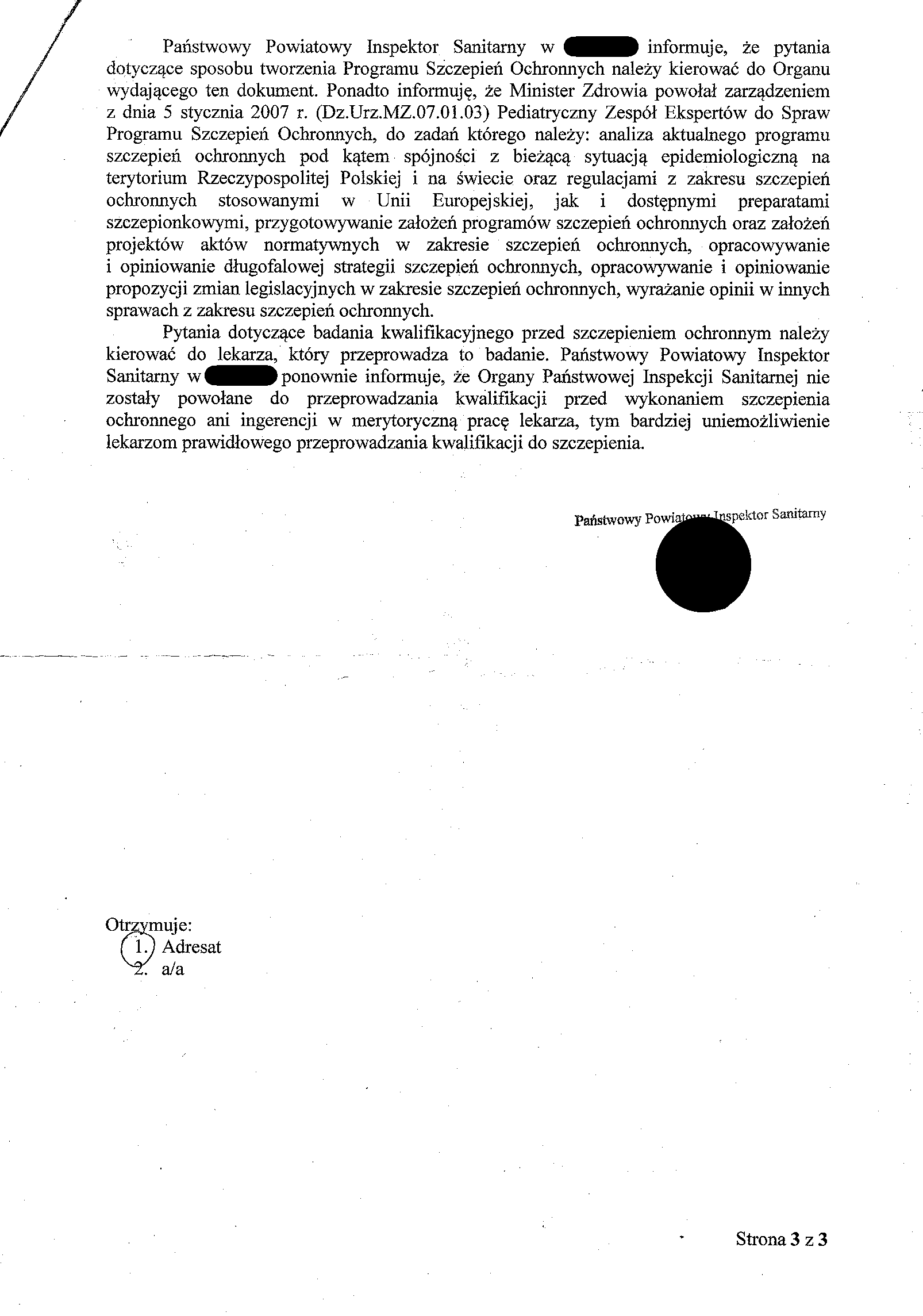 Tymczasem odpowiedzi od Pani Doktor ani widu, ani słychu. Minęło 14 dni, minął miesiąc... W końcu 2 miesiące później (sic!) dostałam pismo. Otwieram, czytam treść na szybciocha: ... wyżej wymienione pytania, zwracamy się z prośbą o ustosunkowanie się do nich. Ale co, mam narysować? Za słabo opisałam? Sprawdzam nagłówki, adresy i wtedy do mnie dotarło, że to nie jest pismo do mnie, tylko pismo wysłane od naszej pediatry do sanepidu, a ja tylko dostałam kopię. To był najbardziej absurdalny moment w moim życiu. Wysłałam pytania do sanepidu. Powiedzieli mi, że to nie ich działka, tylko lekarza. Wysłałam pytania do lekarza, a on twierdzi, że to nie jego działka i wysyła DOKŁADNIE TE SAME PYTANIA DRUGI RAZ DO SANEPIDU, ŻEBY MU POWIEDZIELI, CO ON MA ODPISAĆ! Czy może być jeszcze gorzej? Przecież nawet napisałam, że sanepid już te pytania widział i odesłał mnie do niej. A jakież to kwestie uważa ona za wykraczające poza jej kompetencje?